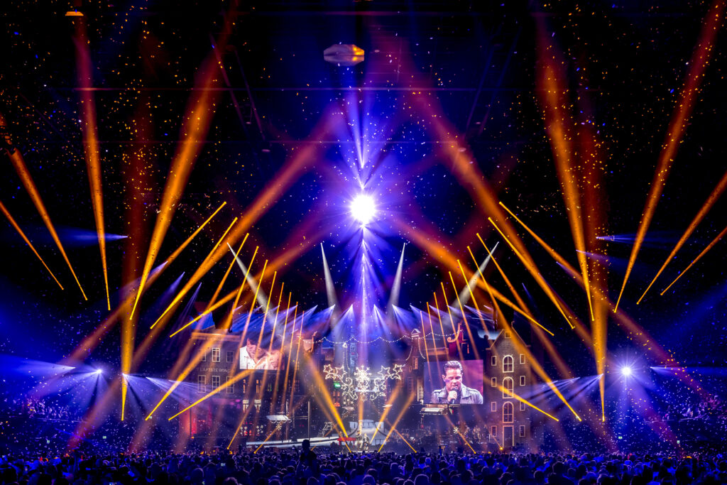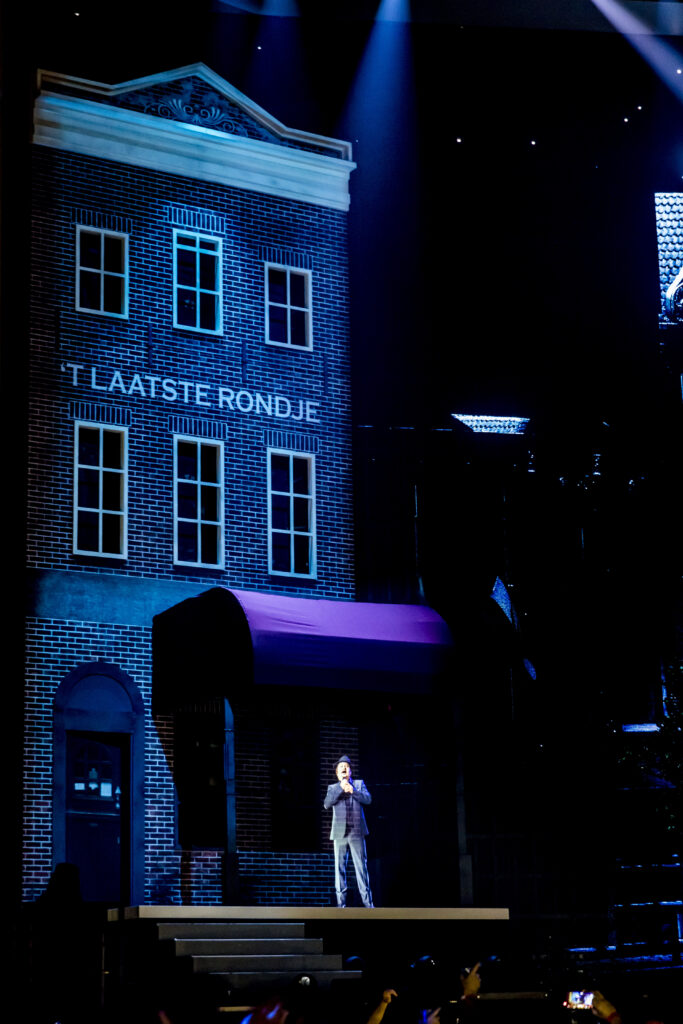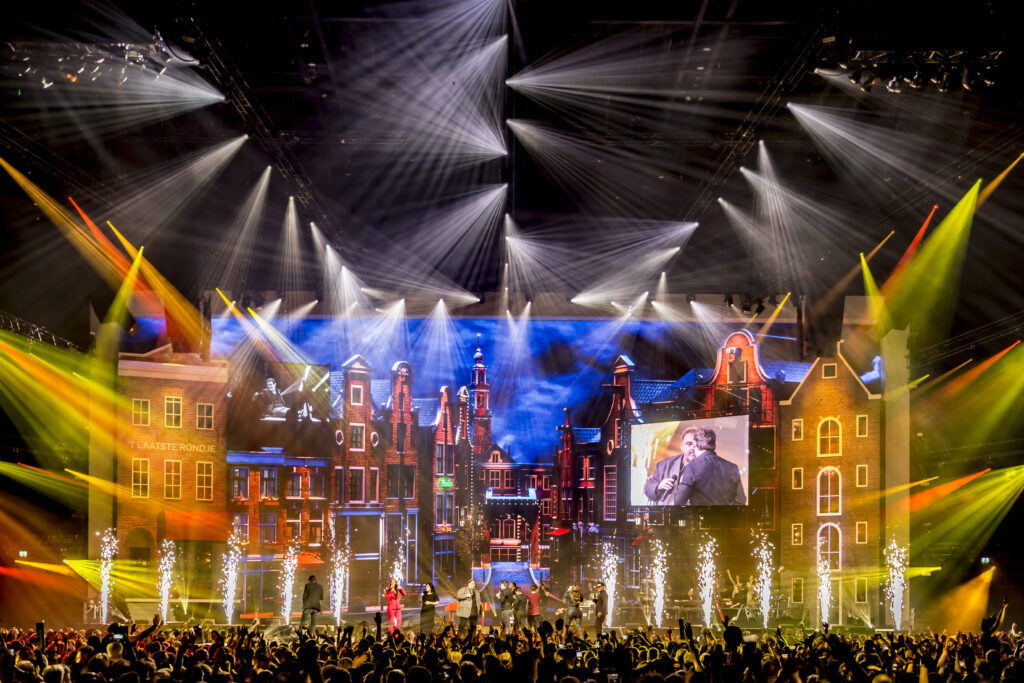 Voor dit jaar Holland Zingt Hazes hebben wij ons laten inspireren door de stad Amsterdam. Tijdens het ontwerpproces hebben we gekeken hoe we met een oneindig perspectief kunnen spelen om een optische illusie te creëren. Door Amsterdamse grachtenpanden zo te plaatsen dat ze in een ronding weglopen met zowel fysiek als in video gecreëerde huizen voelt het vanaf alle kanten alsof ze netjes door lopen.