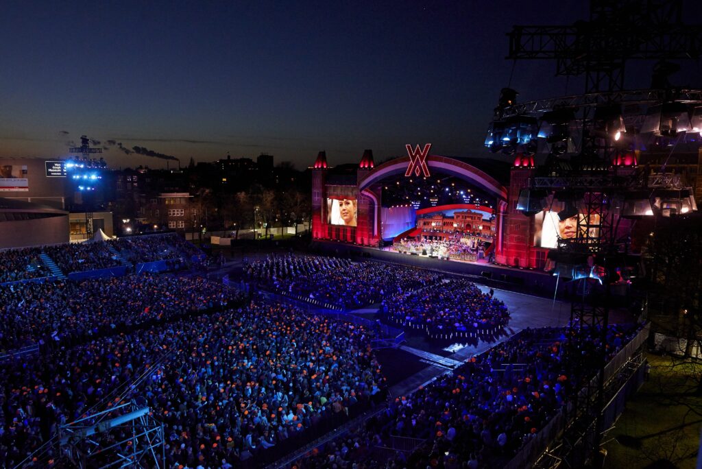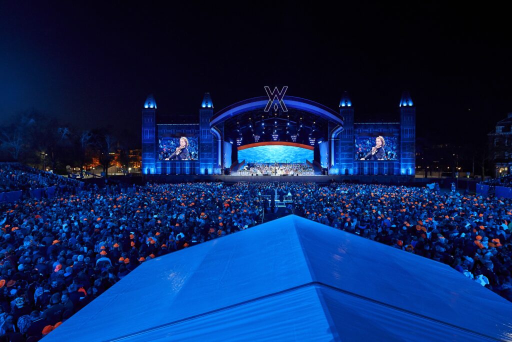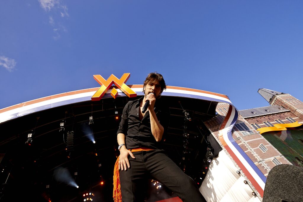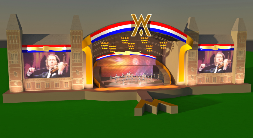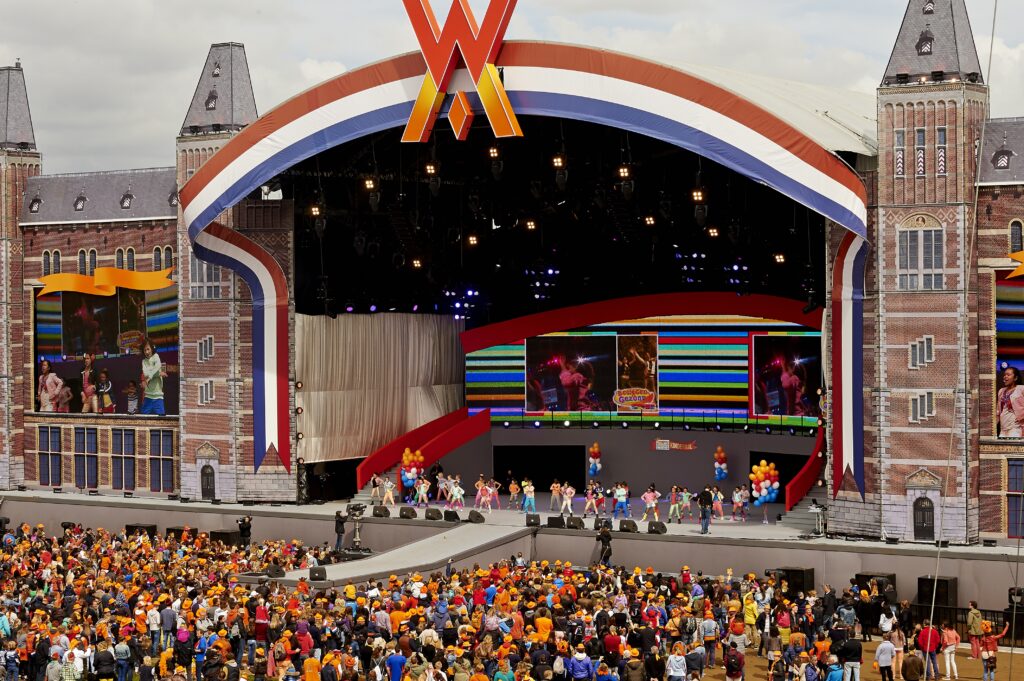For the coronation of Dutch King Willem-Alexander in 2013, various activities were organized in Amsterdam. On behalf of the Nationale Postcode Loterij, we were responsible for the design of the central stage on Museumplein, with the highlight being the King's Ball performed by André Rieu. We drew inspiration from the surroundings and respectfully used the Rijksmuseum as our starting point, making a quick connection to the royal family. The curving Dutch flag, together with the coronation logo, bring everything together and give it a sense of unity.