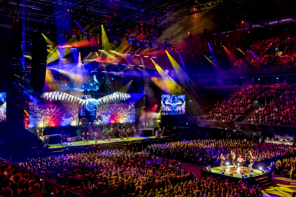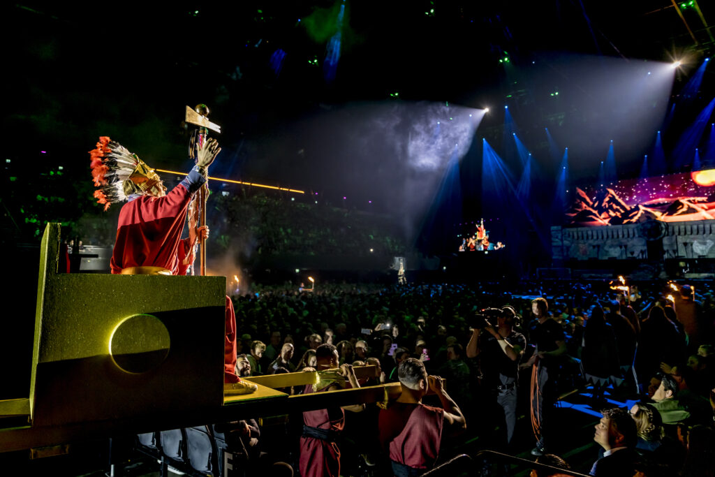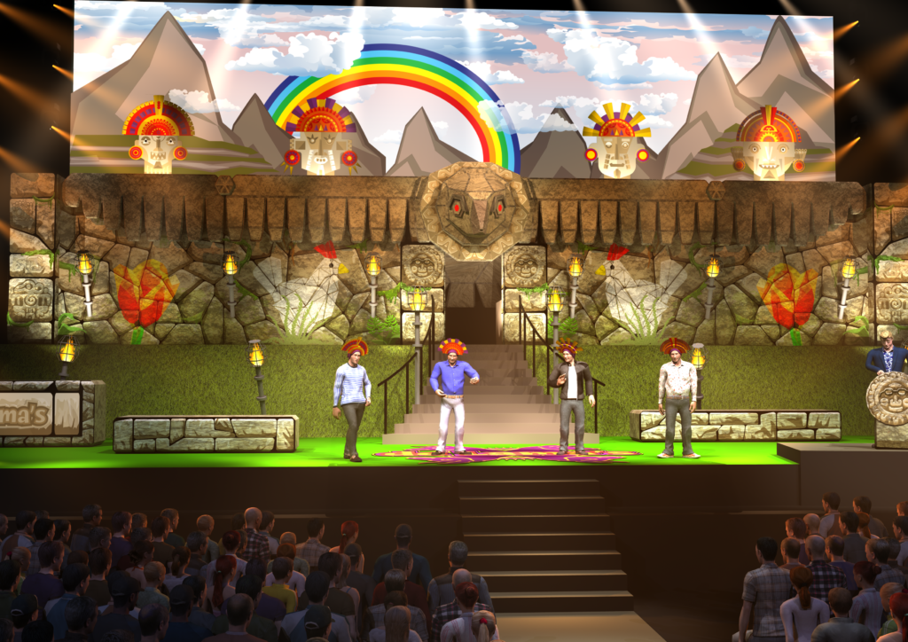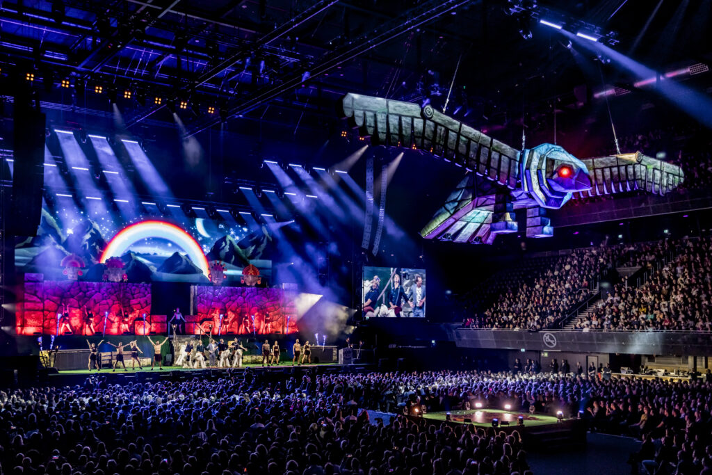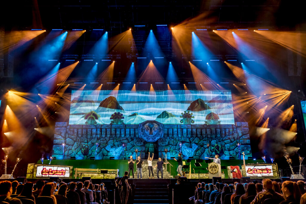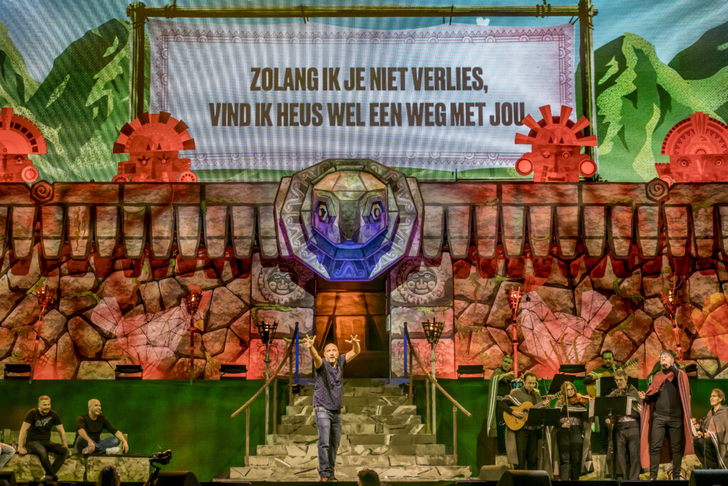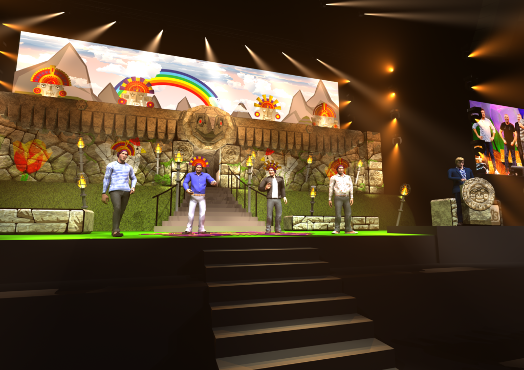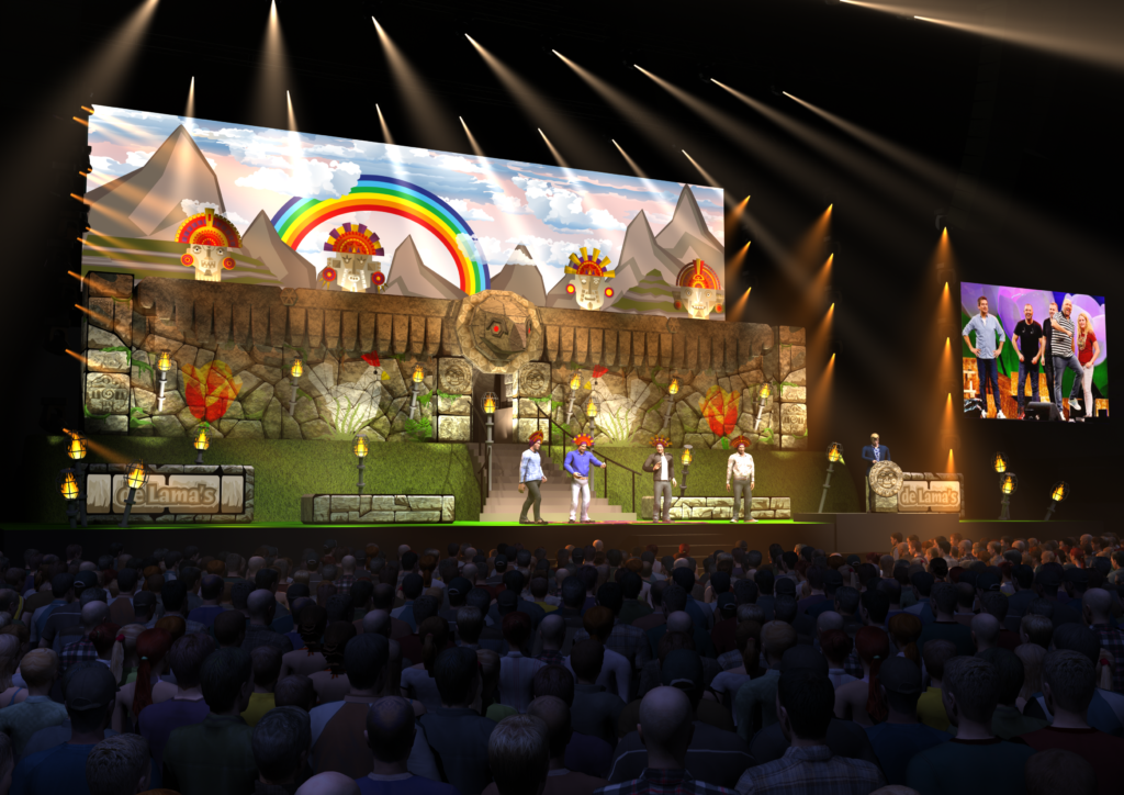 For their second Ziggo Dome show, the Lamas went back in time to the Inca era during the reign of King Patricio, when the Lamas originated. To create the perfect setting, they tasked us with designing a suitable temple. The Temple of the Condor we created, complete with a vibrant mountainous backdrop, provided an ideal setting for their performance.
