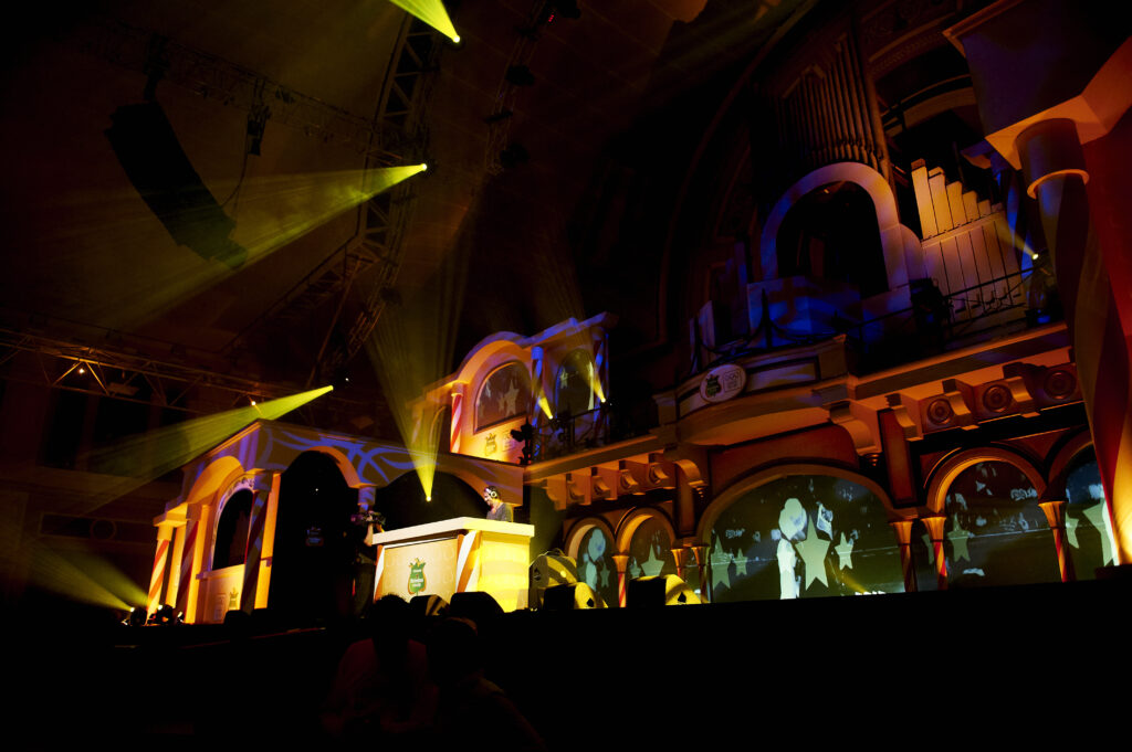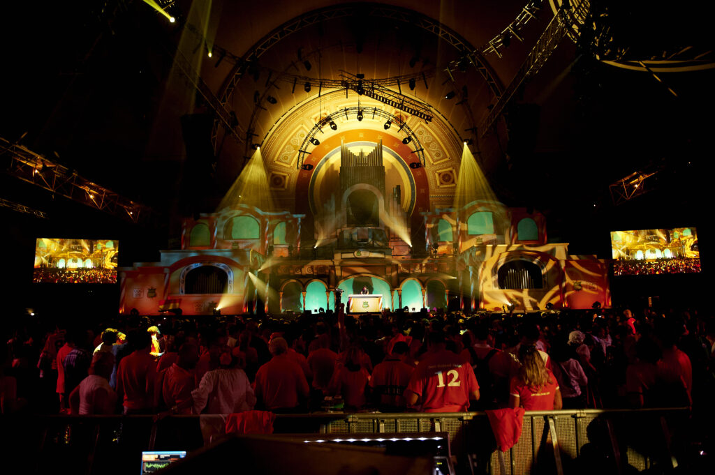 During the 2012 London Olympics, the Holland Heineken House settled in the iconic Alexandra Palace. In the main hall, we provided the design for the ceremony stage. We embraced the characteristic organ as a central design element and gave it a Dutch twist by turning it into a barrel organ with a wink, transforming an English icon into a Dutch scene. The highlights were the many awards ceremonies where the winners descended down a staircase from above to be honored.