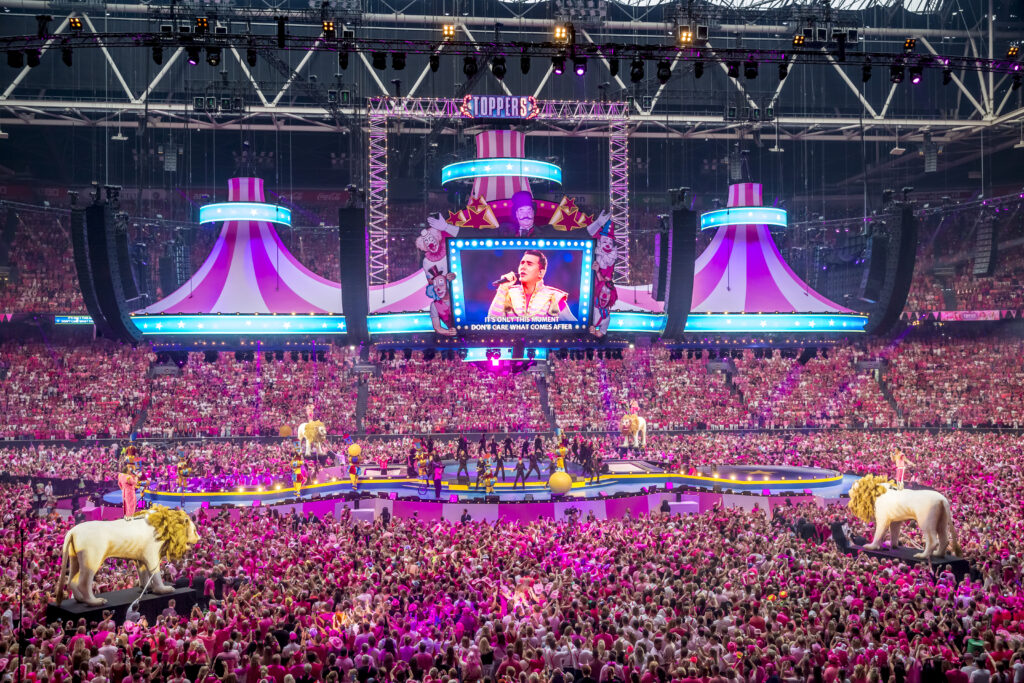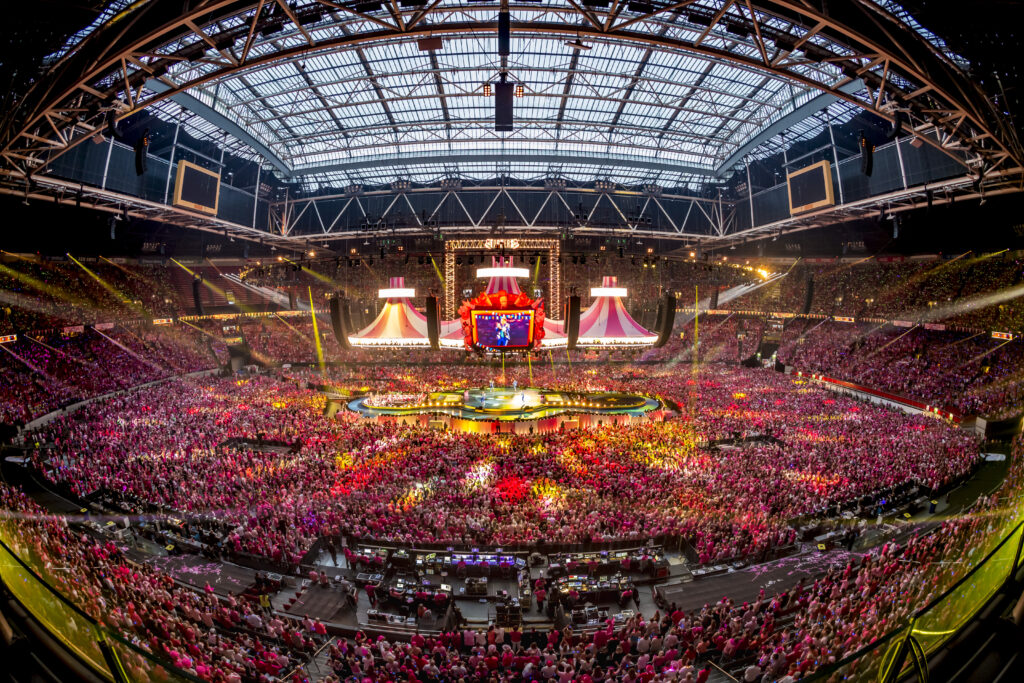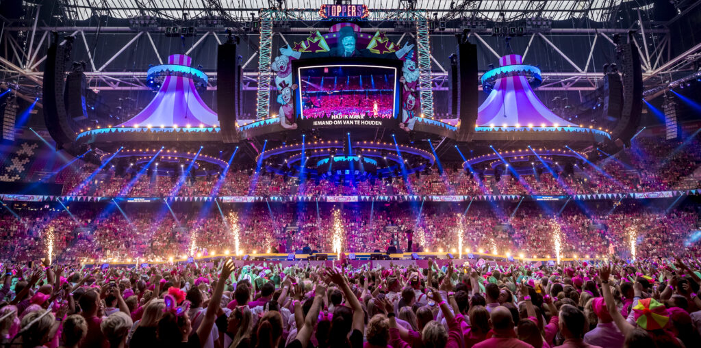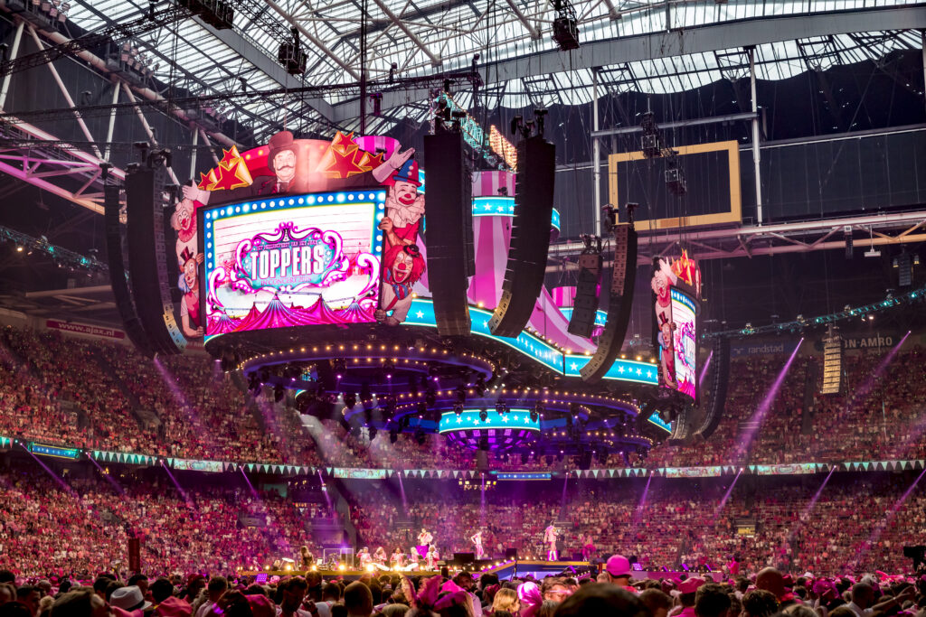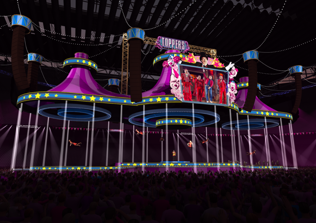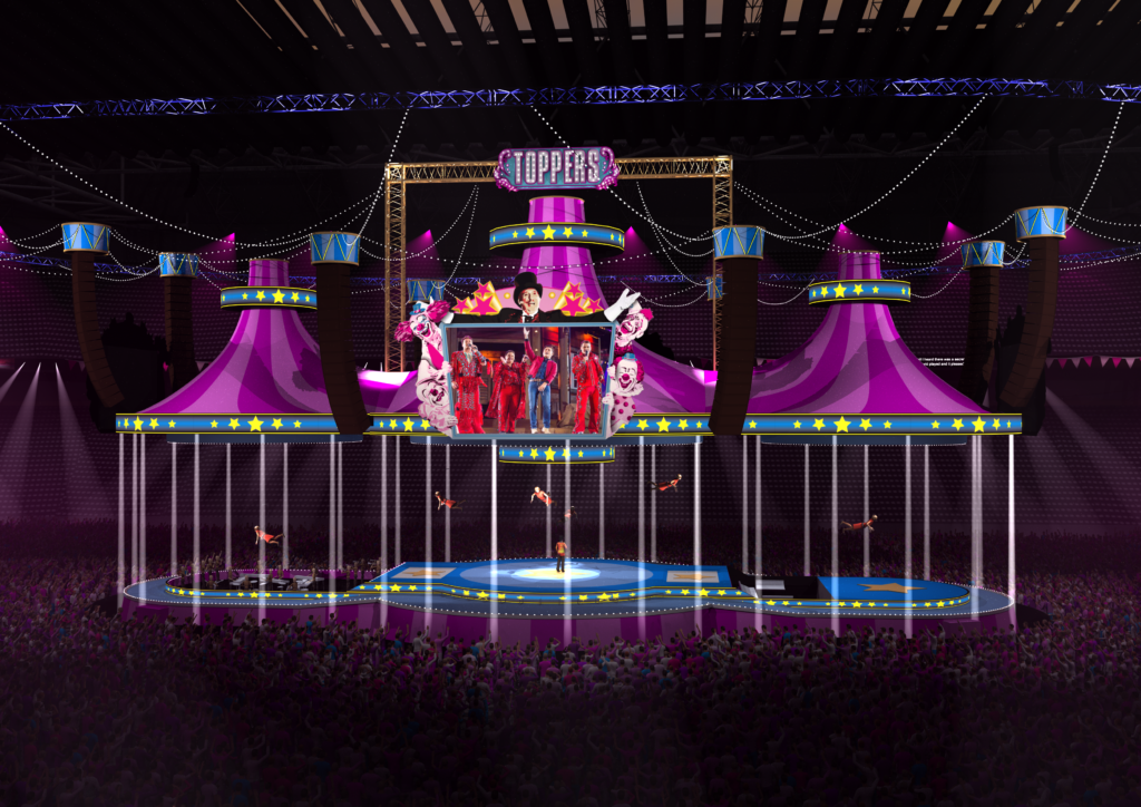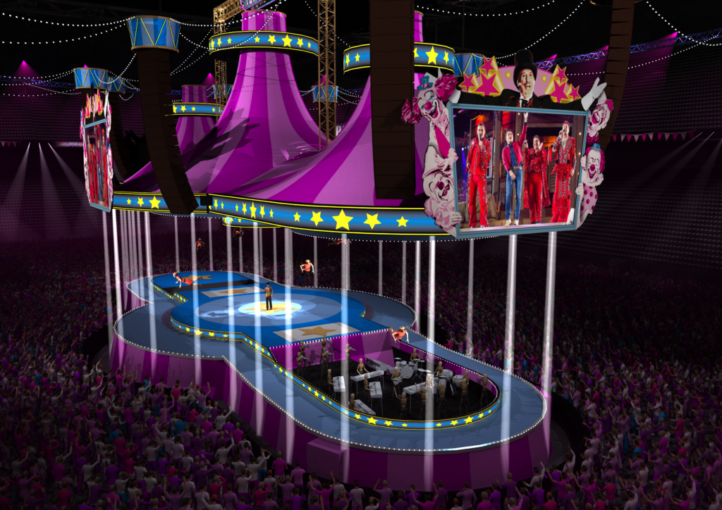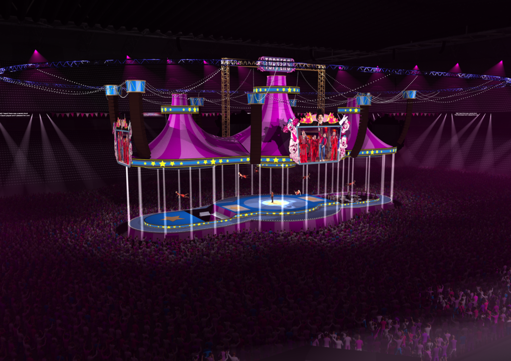Met het thema “The Circus Edition” vraag je om spektakel. Dat hebben we kunnen realiseren door een grote circustent te creëren die als basis diende voor allerlei effecten. In het podium waren trampolines draaischijven en liften verwerkt. De tent was voorzien van een videorand om de sfeer te kunnen veranderen per nummer.